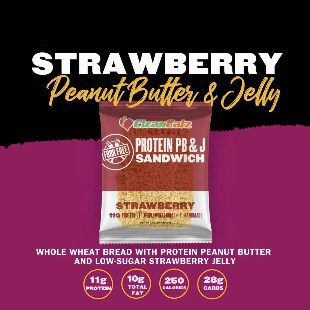 Introducing the Protein Peanut Butter & Jelly, the perfect snack or meal option for those looking to eat well on the go! Made with whole grain bread, protein peanut butter, and low-sugar jelly, our Protein PB&J are grown-up alternatives to your favorite childhood sandwich. The convenient, handheld size is perfect for busy mornings, busy afternoons, or as a snack anytime, anywhere. So why settle for unhealthy fast food when you can have a Clean Eatz Protein PB&J, full of flavor and nourishment in every bite?